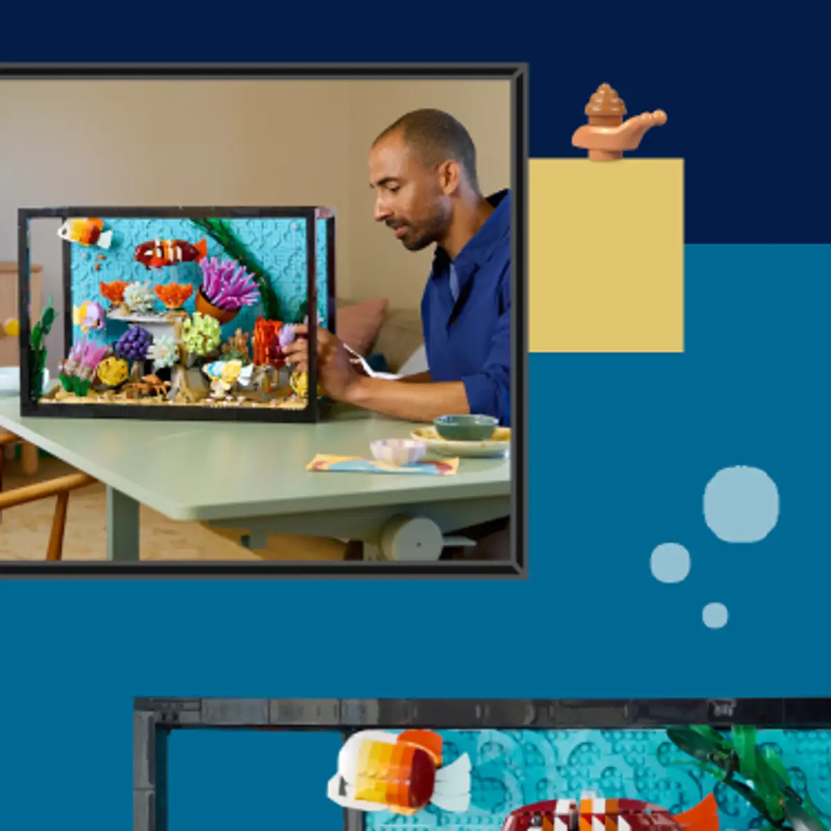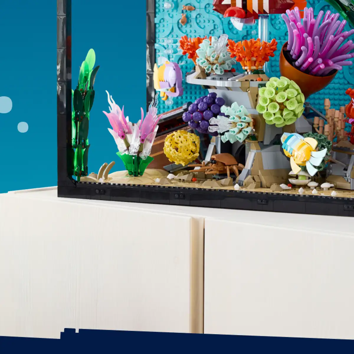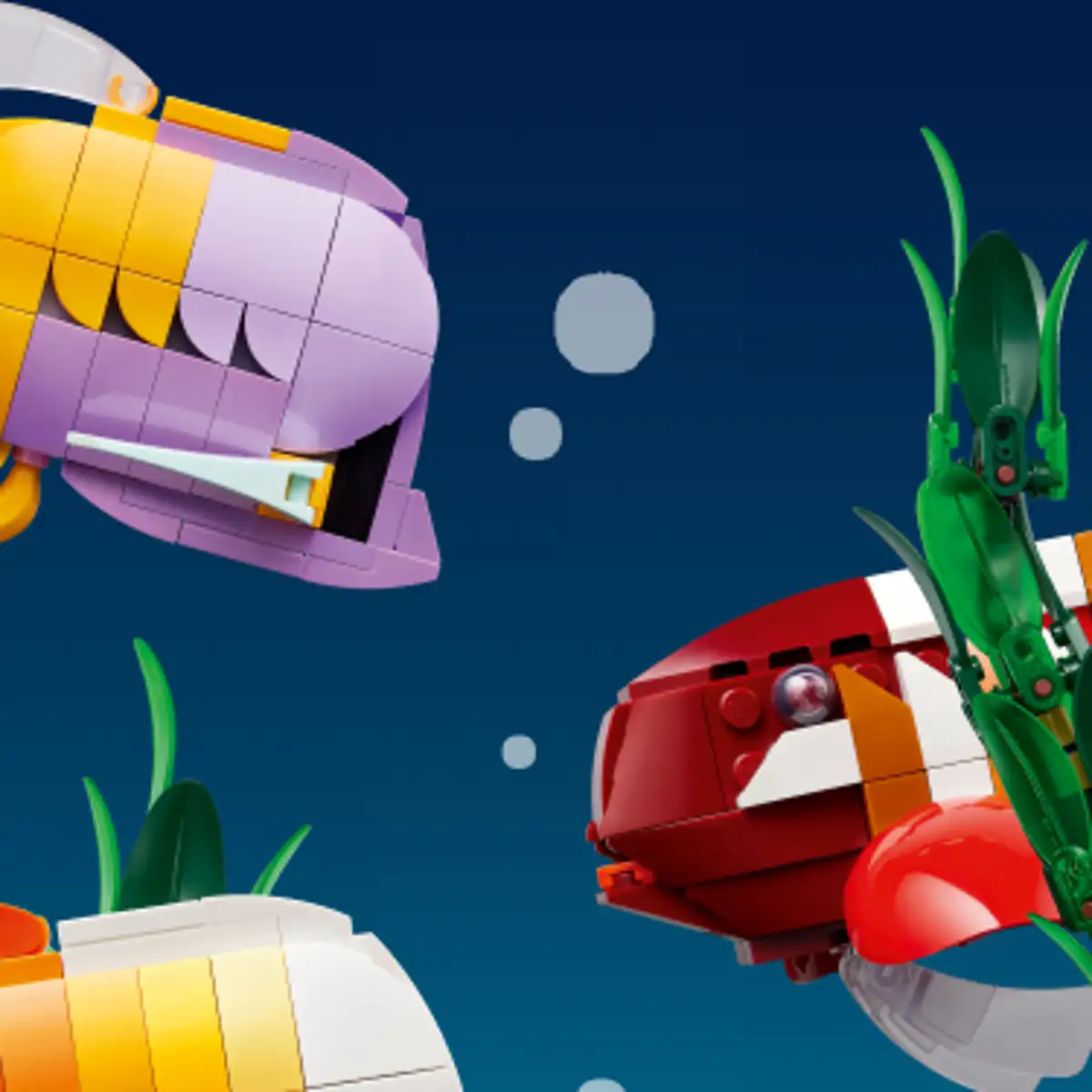 Voeg een vleugje fantasie toe met een regenboogvis, verschillende soorten maanvissen en een speciaal gestreepte steenvis bedacht door LEGO® ontwerpers.